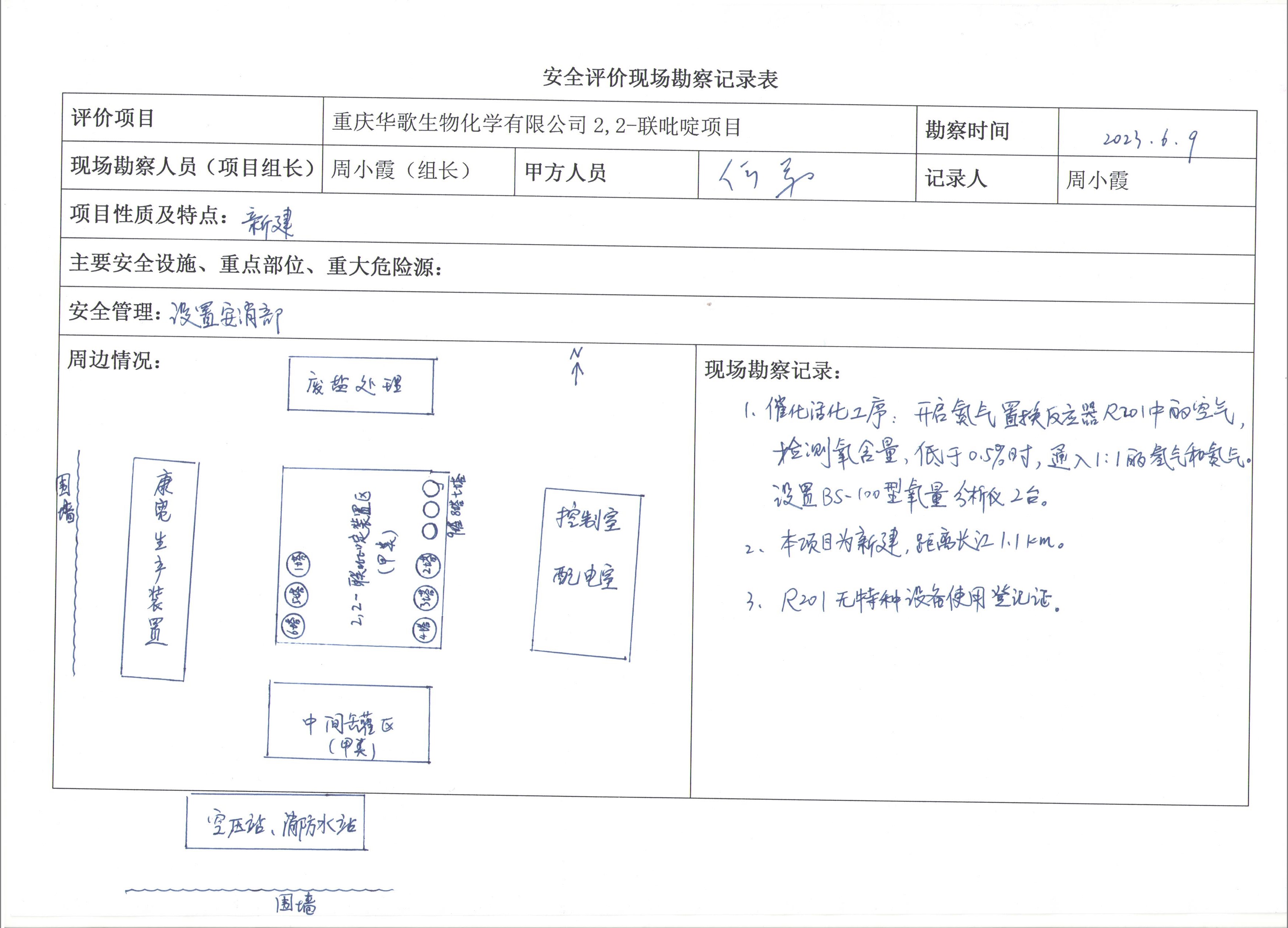 項(xiàng)目名稱 | 重慶華歌生物化學(xué)有限公司2,2-聯(lián)吡啶項(xiàng)目安全驗(yàn)收評(píng)價(jià) | 合同編號(hào) | DA(渝)-PJ-20230517 | |||||