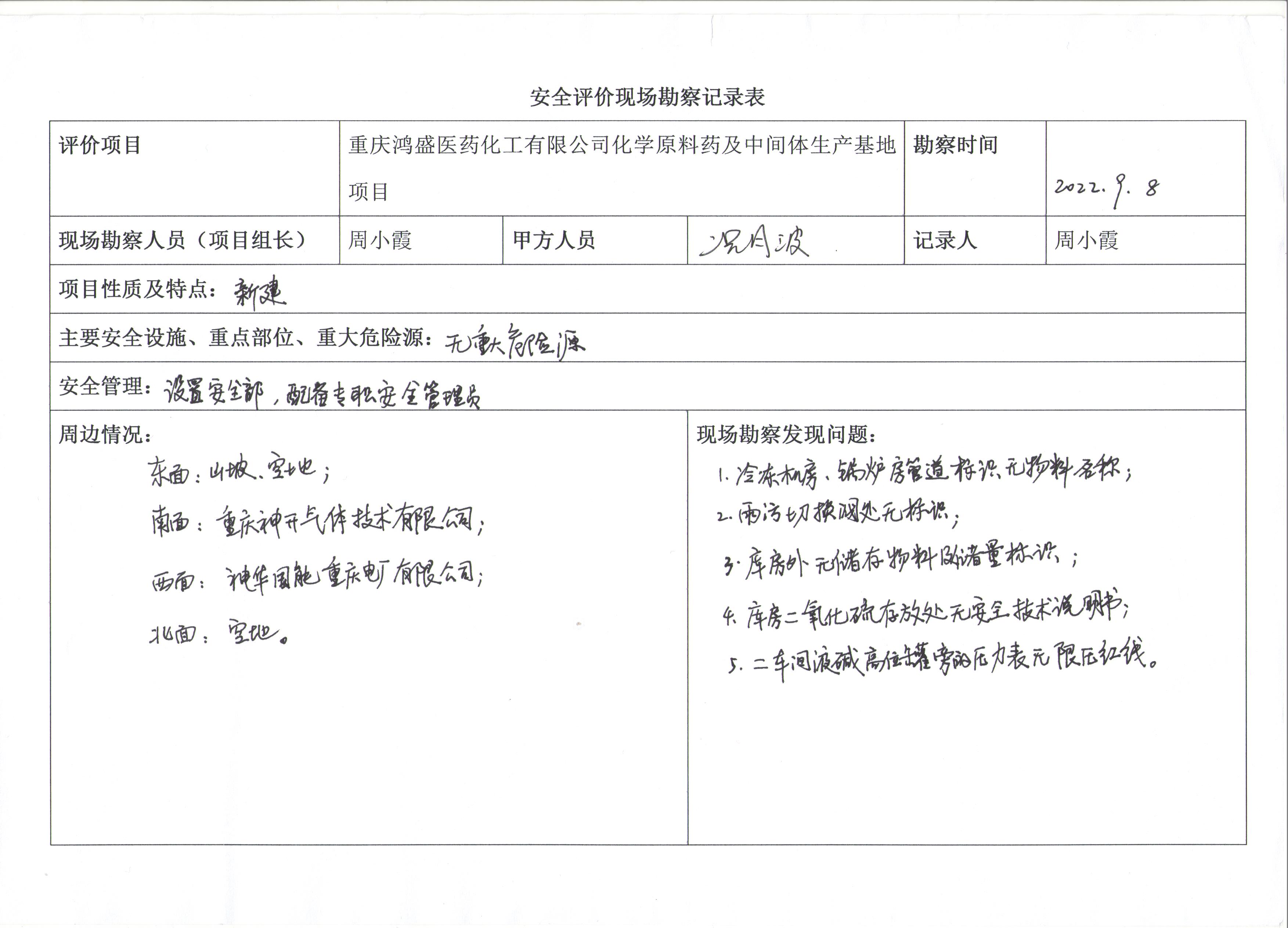 項(xiàng)目名稱 | 重慶鴻盛醫(yī)藥化工有限公司化學(xué)原料藥及中間體生產(chǎn)基地項(xiàng)目安全驗(yàn)收評(píng)價(jià) | 合同編號(hào) | DA(渝)-PJ-2021010 | |||||
