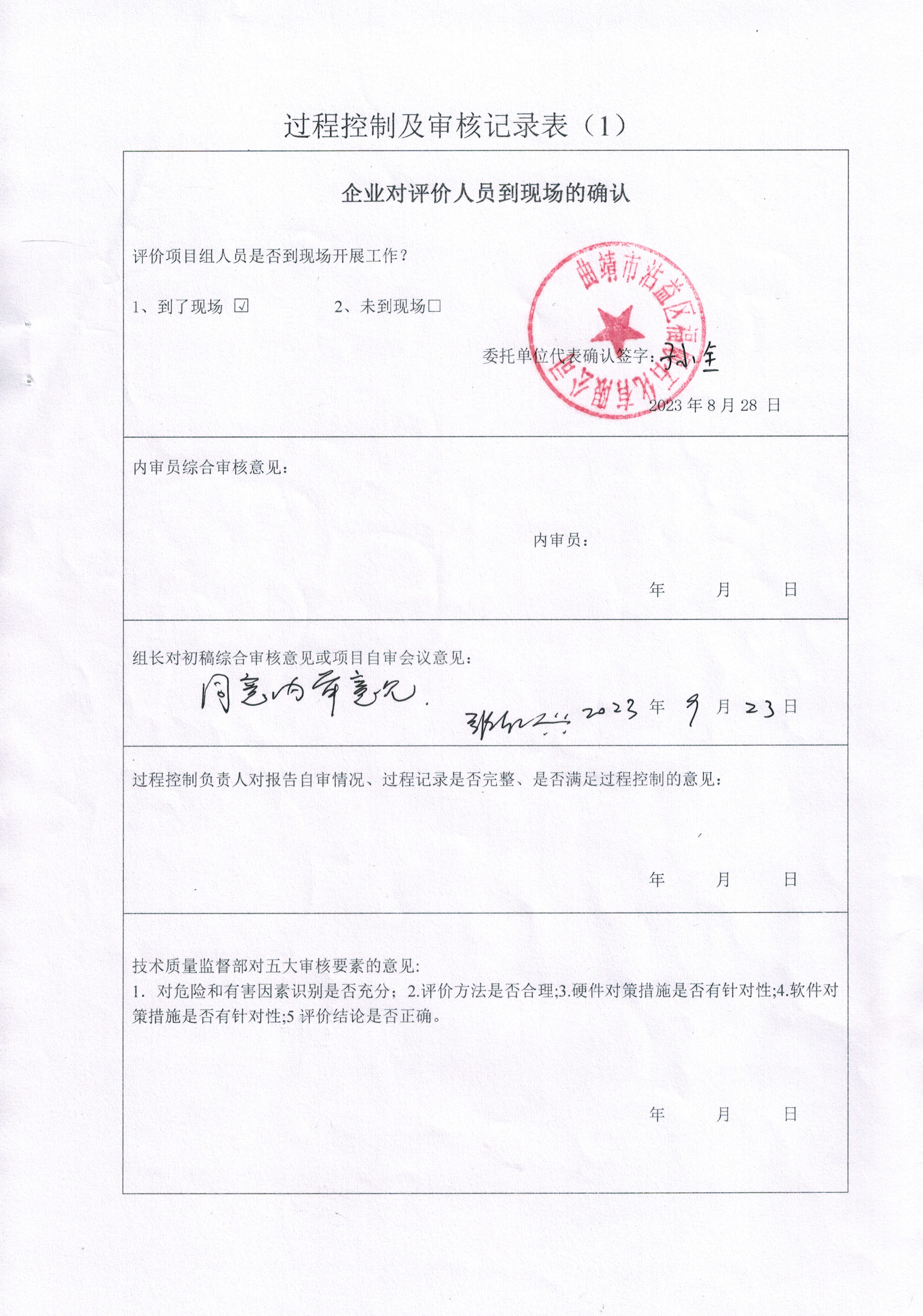 過程控制審核 | 內(nèi)審意見(√ 通過 口 不通過 ) √ 是 口 否 | |||||||