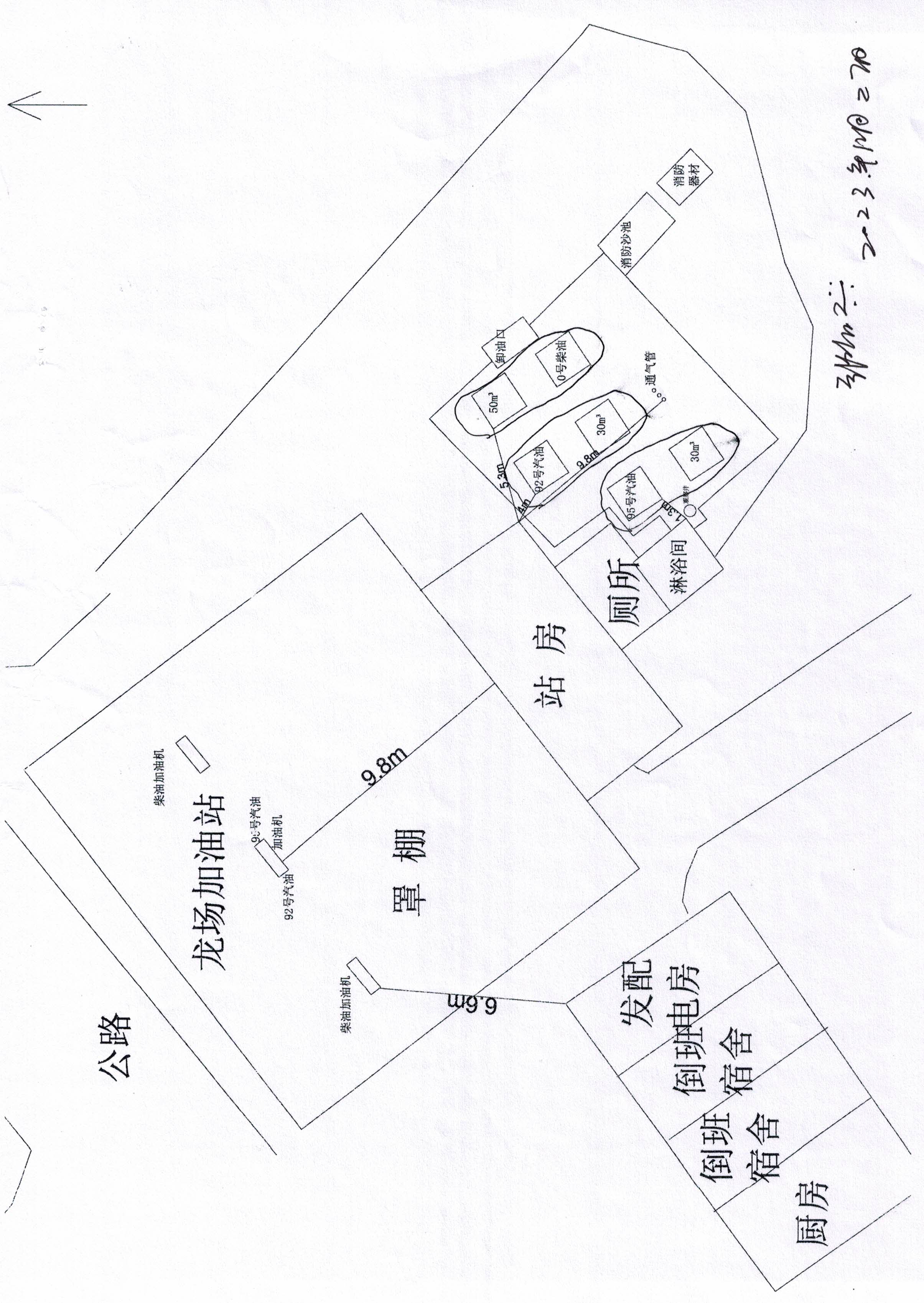 隱患: (1)站房內(nèi)的配電箱門面無“當心觸電”的標識。(2)汽油加油機內(nèi)部的真空泵外殼未接地。 (3)油罐區(qū)汽油通氣管檢測球閥口無絲堵。(4)油罐操作井內(nèi)的液位儀防爆接線盒外殼未接地。 (5)油罐區(qū)積油井內(nèi)的排油閥無絲堵。 | ||||||||