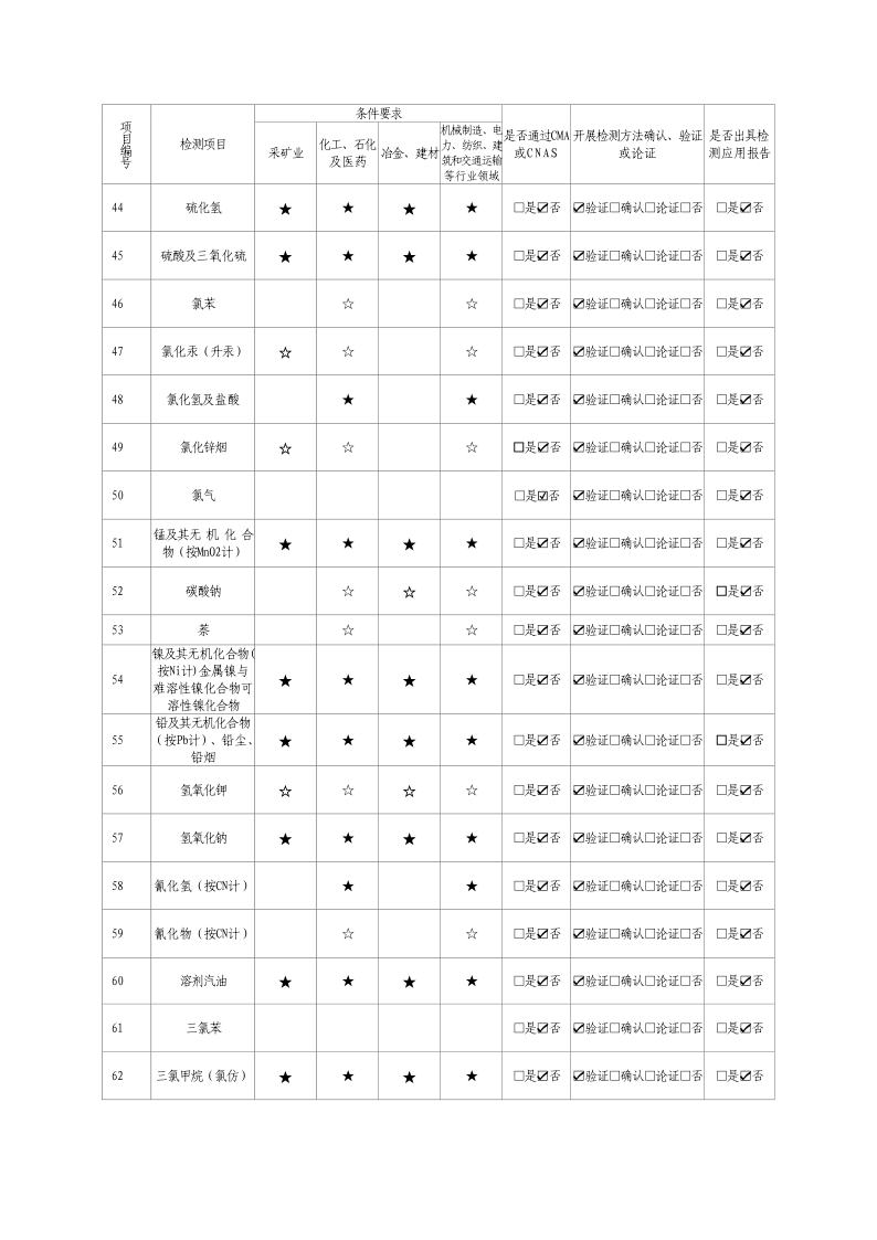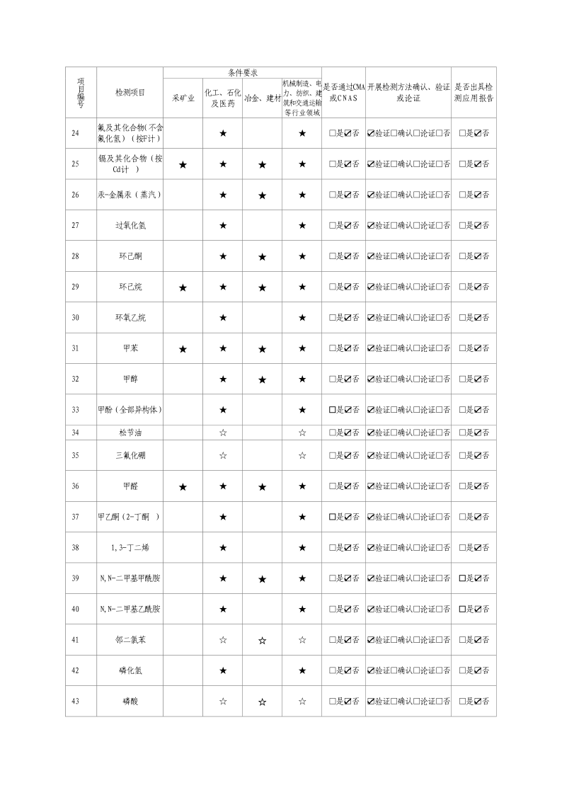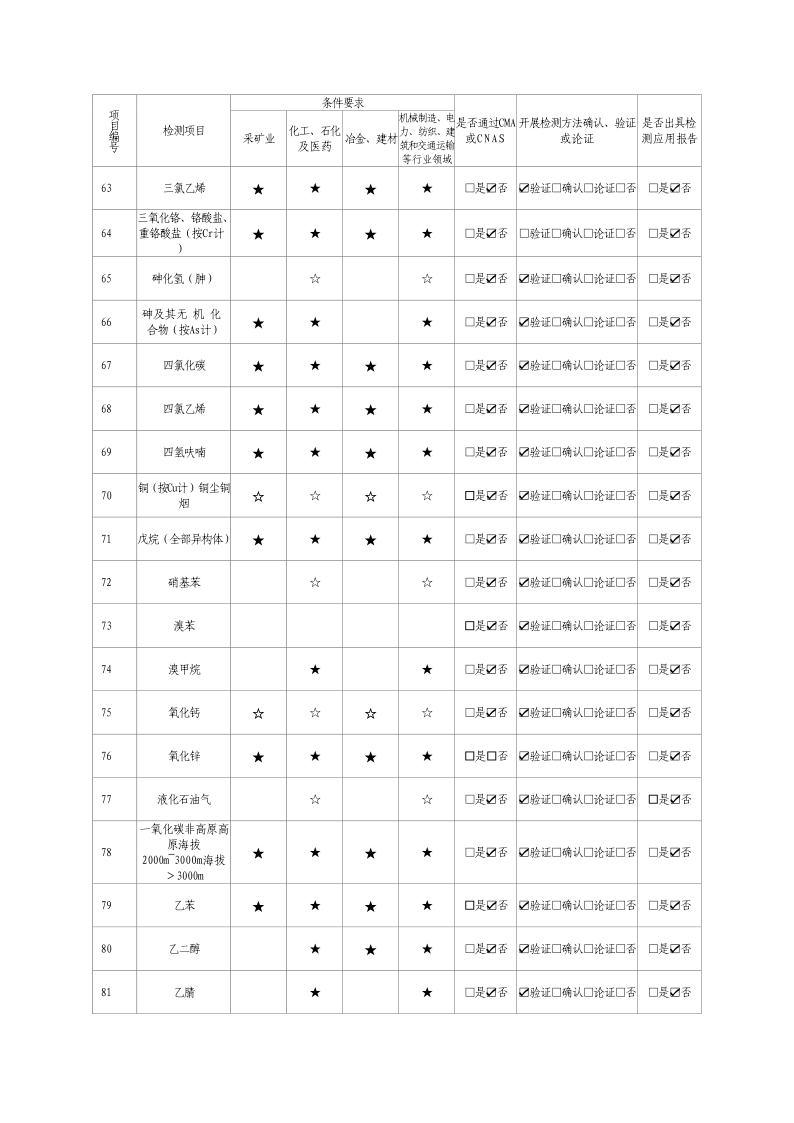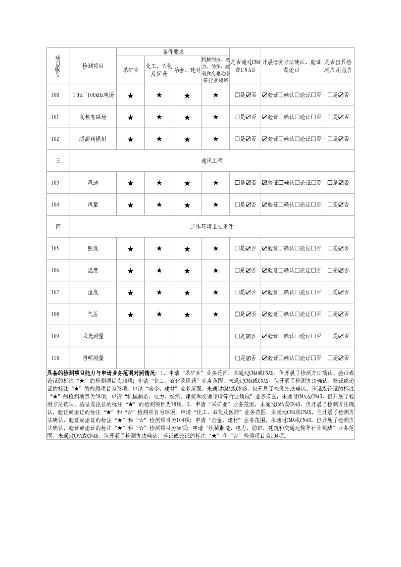 經(jīng)技術(shù)評審審核認定的檢測項目(第一類業(yè)務 合計110項)
