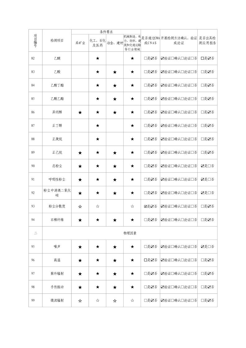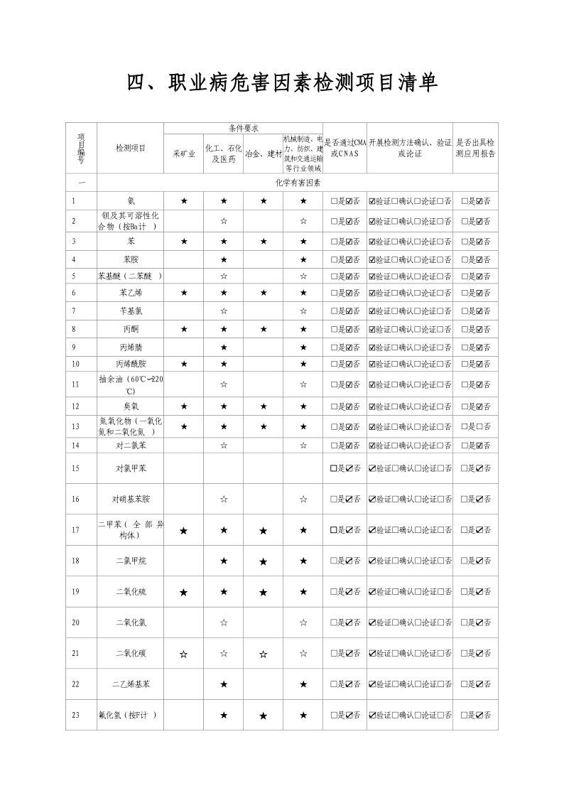 2024年職業(yè)衛(wèi)生技術(shù)服務機構(gòu)資質(zhì)證書及職業(yè)病危害因素檢測項目清單