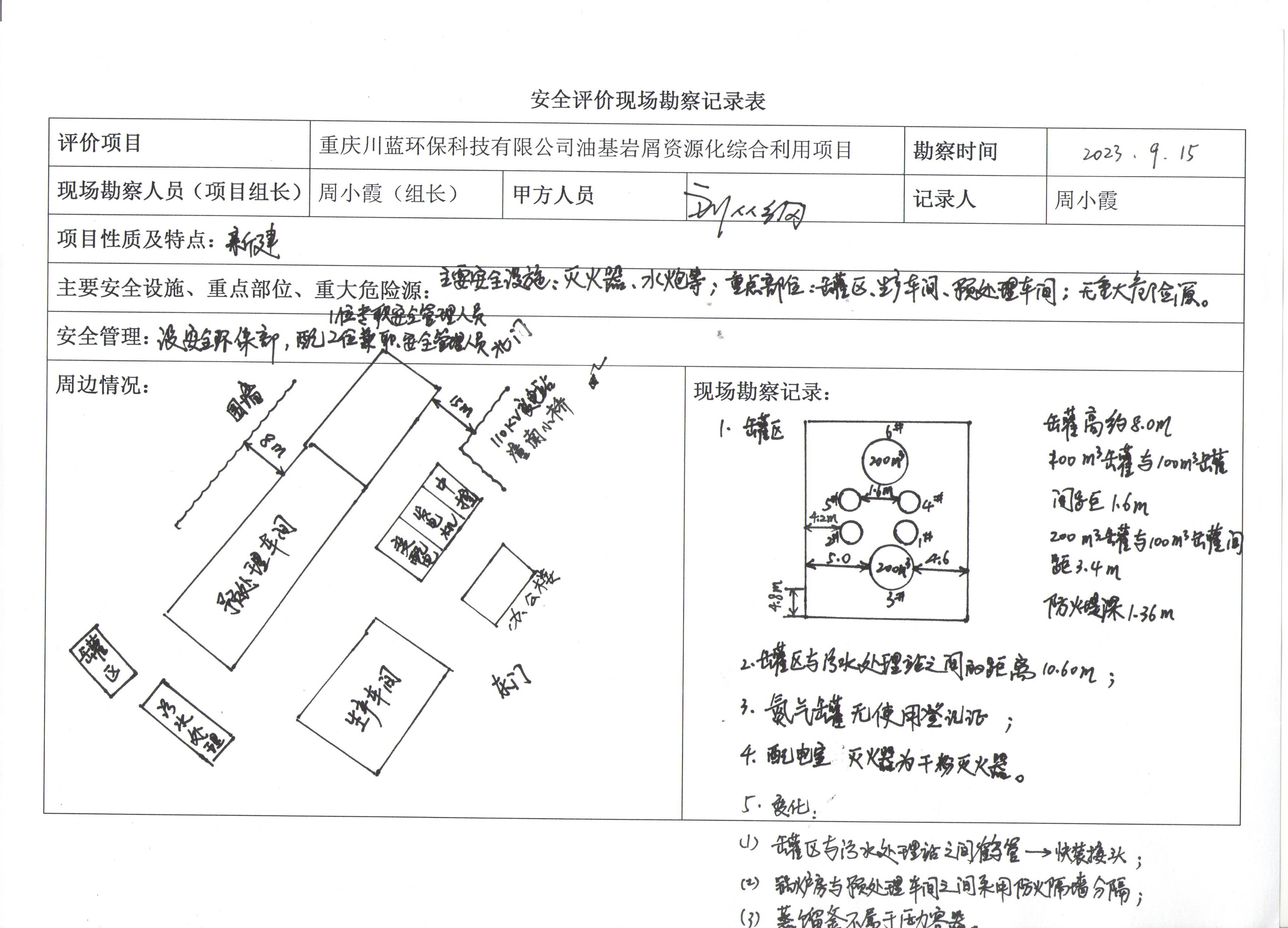 現(xiàn)場勘查情況 | 預(yù)處理車間、生產(chǎn)車間、變配電室、儲油間、裝卸區(qū)、儲罐區(qū)等安全設(shè)施和安全管理符合安全生產(chǎn)條件。 | |||||||